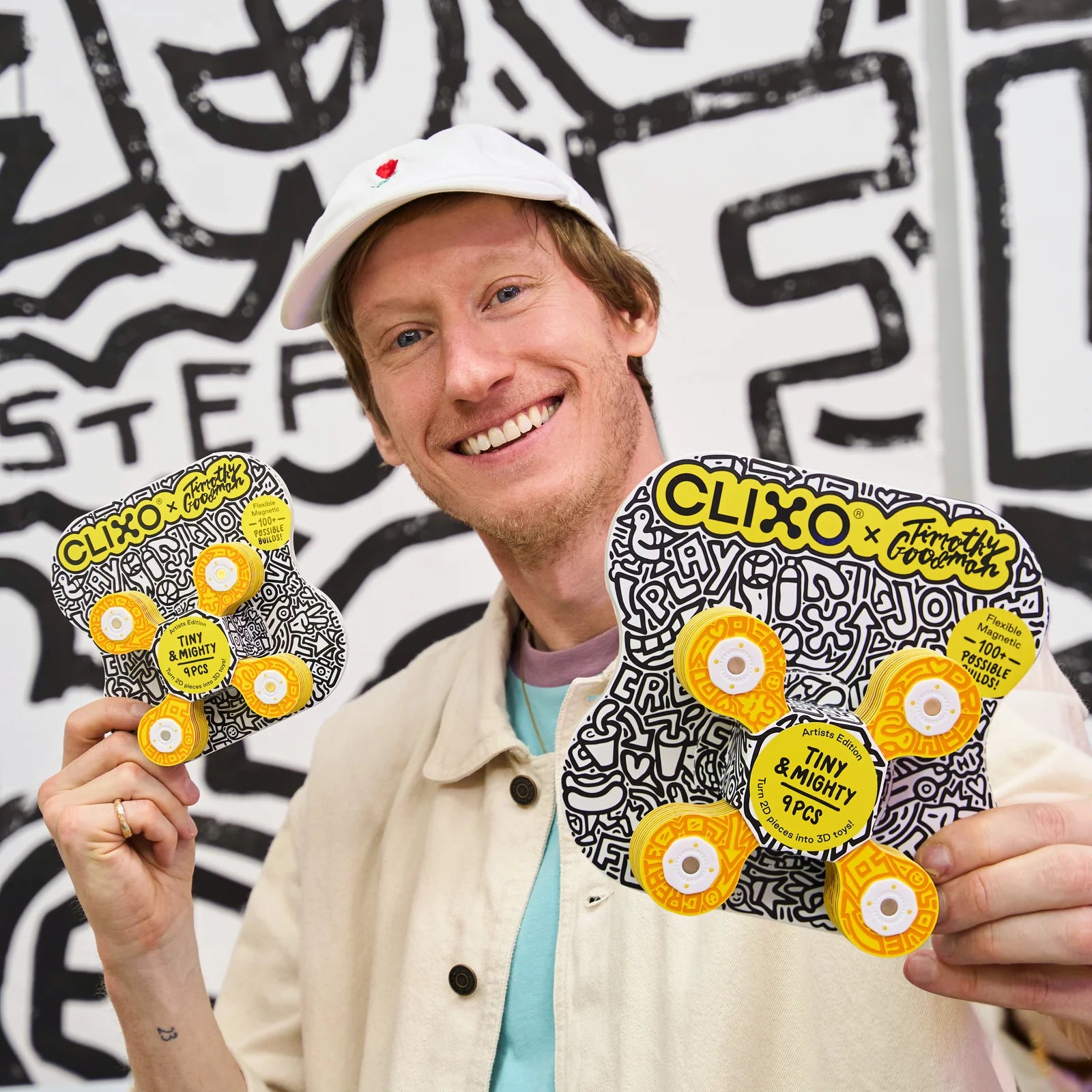 The Clixo x Timothy Goodman Pack includes 9 pieces that can build over 100 creations. This collaboration emphasizes Clixo and Timothy’s positive approach to fun and design and encourages kids and adults to continue thinking, building, and doodling creatively. Unlock the fun with colors unique to this pack. Inspire creative confidence, foster STEAM learning, and build endless creations. This pack contains 9 pieces in our iconic quad shape. Learn more about Timothy and our collaboration on our blog!