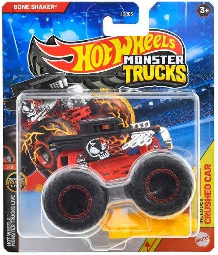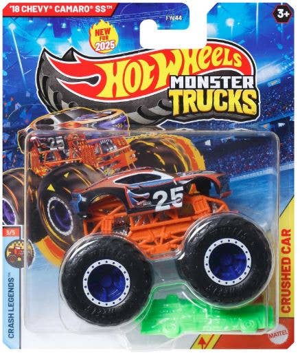 Assortment of Hot Wheels 2025 Monster Trucks. Online orders will receive one randomly selected truck.