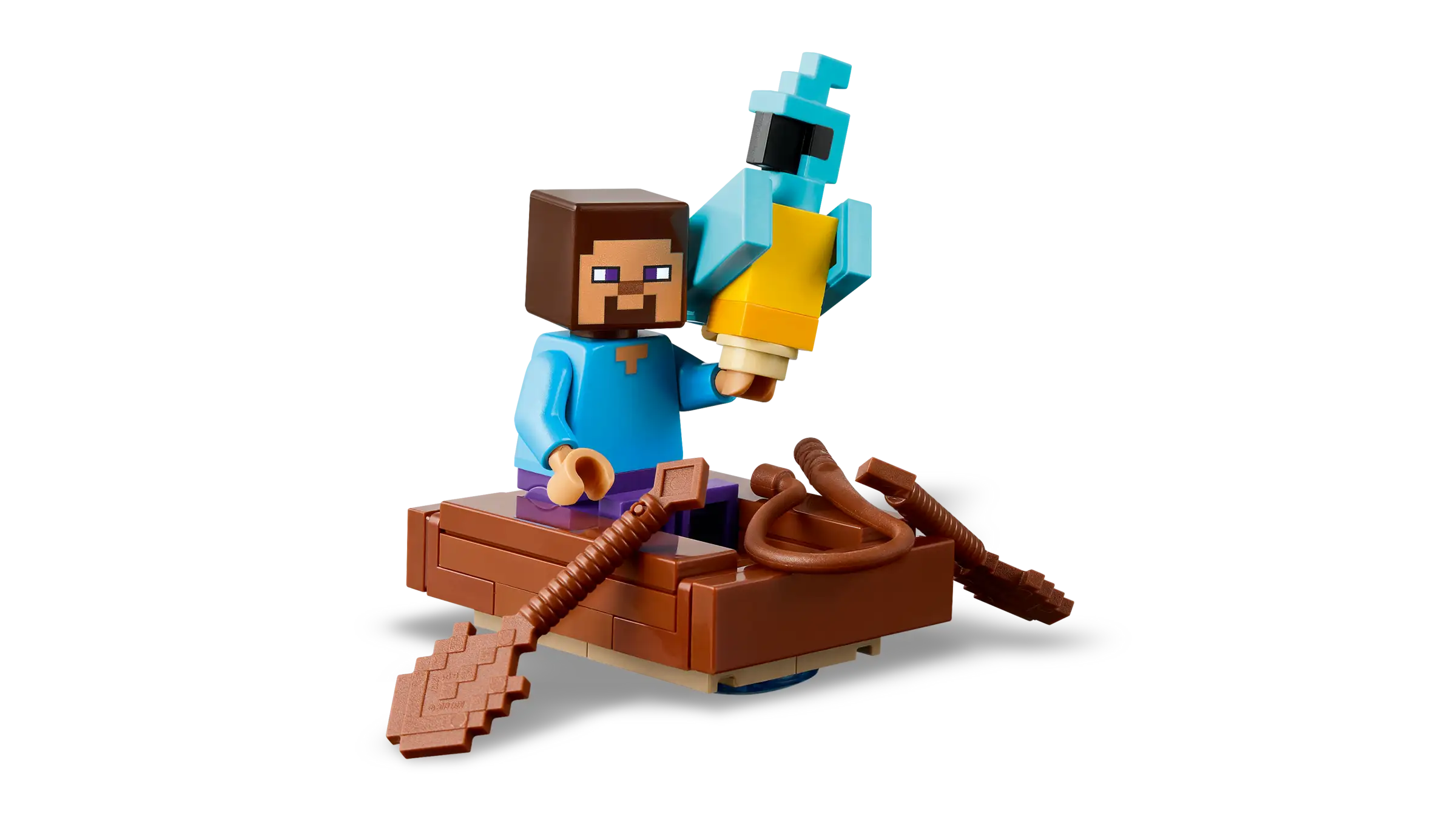 The buildable house is set in the Minecraft jungle biome and looks like a large-scale version of the game’s iconic TNT element. A switch on the side lets kids trigger an exploding TNT function, which collapses the entire house. When the dust settles, kids can rebuild the house so it’s ready for their next adventure. Steve, Creeper™ and zombie minifigures inspire imaginative play and battle action. Authentic LEGO Minecraft accessories include a boat, fishing rod, fish, parrot and jungle foliage. The LEGO® Builder app gives kids the added fun of using their device to zoom in and rotate models in 3D. Contains 287 pieces.