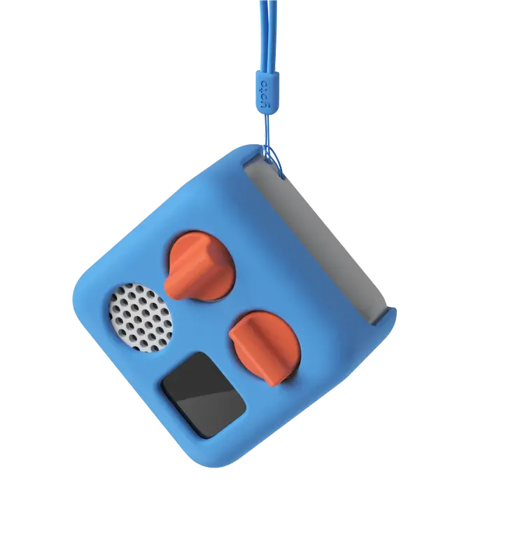 Adventure Jacket Mini is a colorful silicone carry-case for Yoto Mini. It fits snugly over your Yoto Mini to protect it from smalls bumps and it has a wrist lanyard so kids of all ages can carry Mini safely.