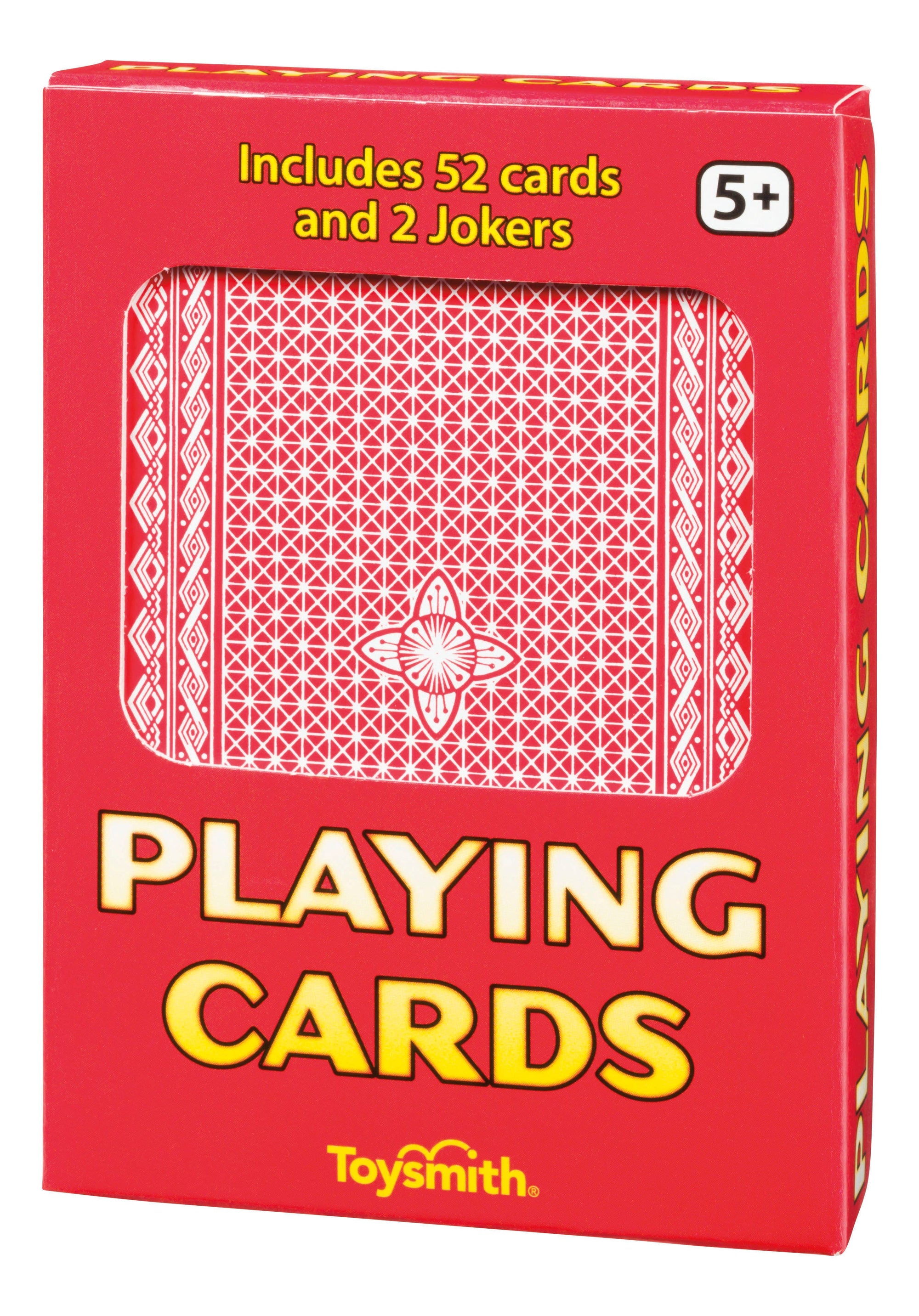 Classic Playing Cards are a traditional standard deck with 52 suited playing cards, 2 jokers, and 2 ad cards. Suited cards include 1 set of red hearts, black spades, red diamonds, and black clubs. Choose from cards with a red backing or blue backing. All 56 cards are neatly contained within a reusable tuck-top box. Age Grade: 5+