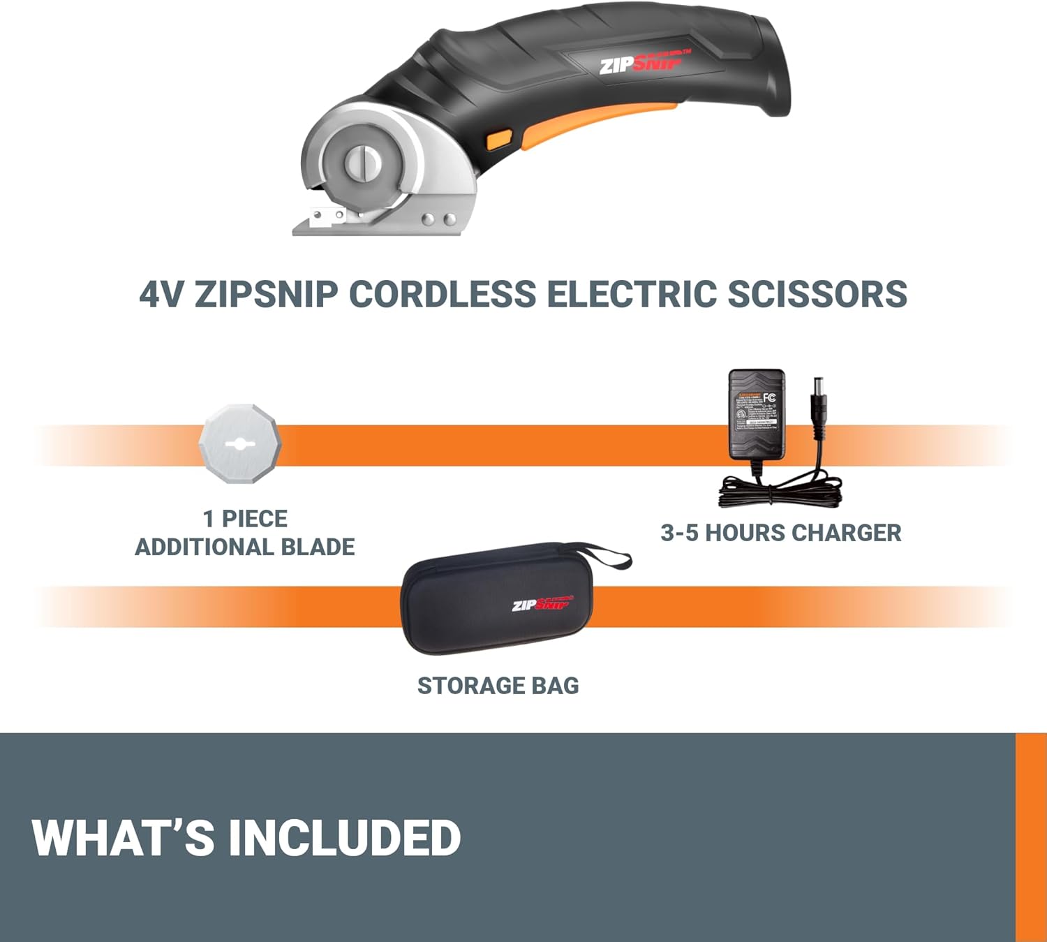 - [Added portability] With a customized portable case for your zipsnip cordless electric scissors and all accessories, you could take them anywhere for your DIY project and keep yourself protected from the sharp blade when not in use.